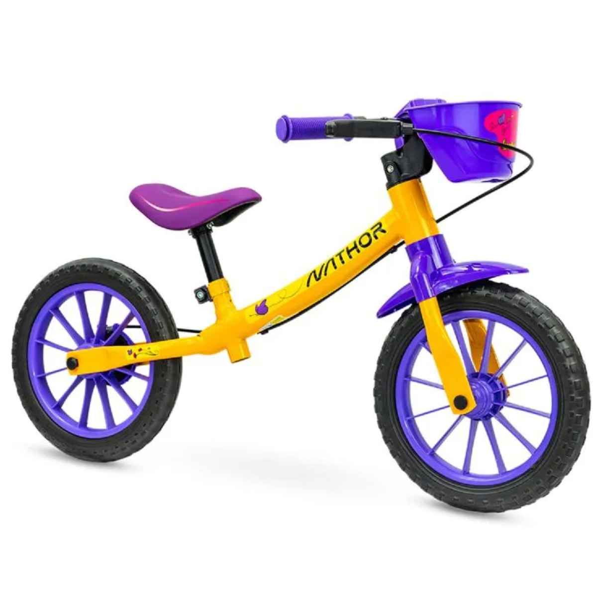 Bicicleta Aro 12 Infantil Nathor Balance Garden Fly Amarelo e Roxo