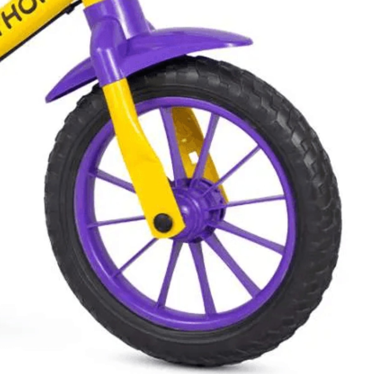 Porque é a opção ideal para ensinar equilíbrio e coordenação de forma progressiva e divertida. Sem pedais, a criança aprende no próprio ritmo, criando confiança para pedalar sozinha futuramente. Além disso, o design colorido em amarelo e roxo deixa a experiência ainda mais encantadora.