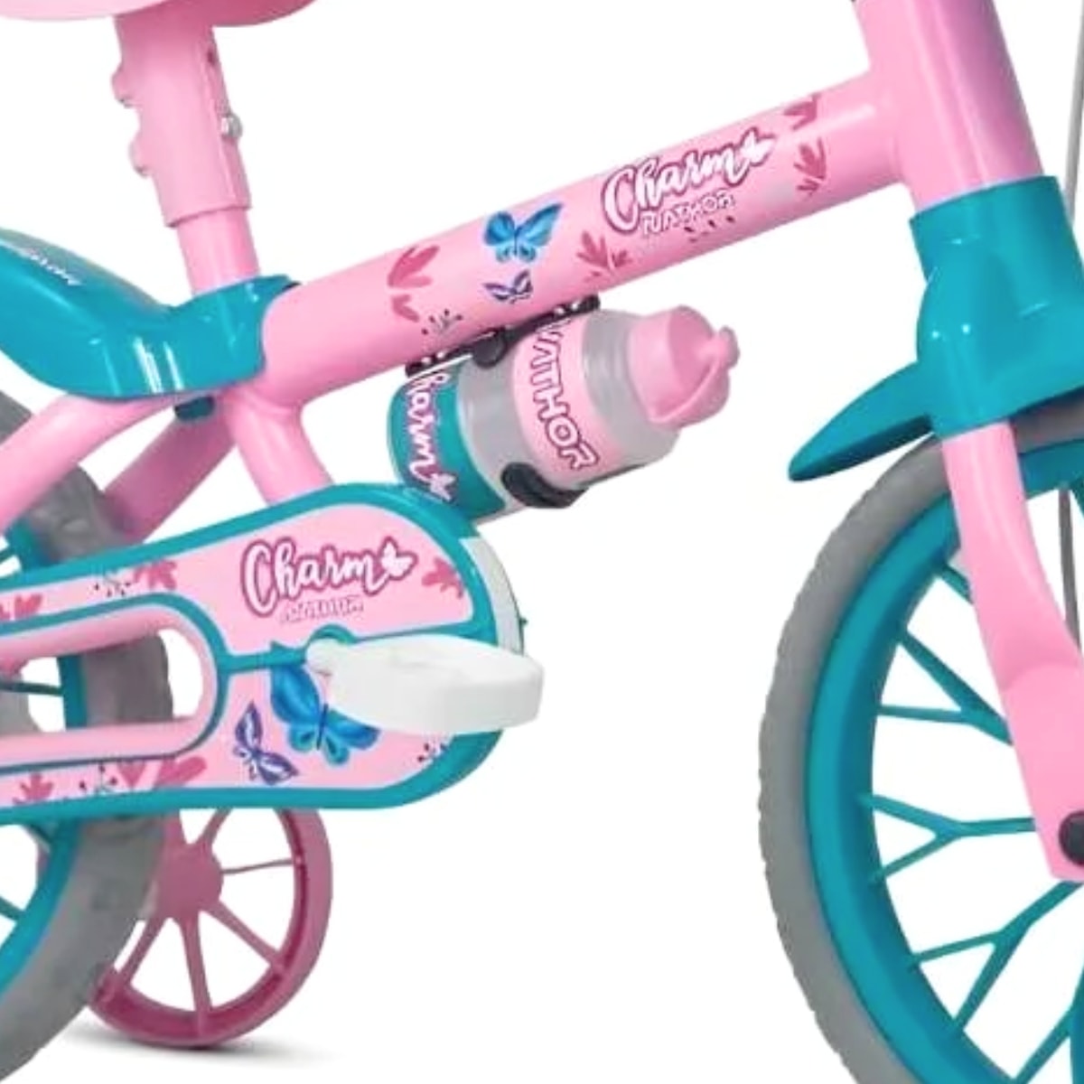 A Bicicleta Infantil Nathor Charm Aro 12 Rosa e Azul é ideal para os primeiros pedais das crianças. Com design encantador e moderno, proporciona diversão e aprendizado com segurança. Leve, prática e equipada com pneus EVA que não furam, é a escolha perfeita para acompanhar as descobertas dos pequenos, ajudando no desenvolvimento da confiança, coordenação e equilíbrio desde cedo.