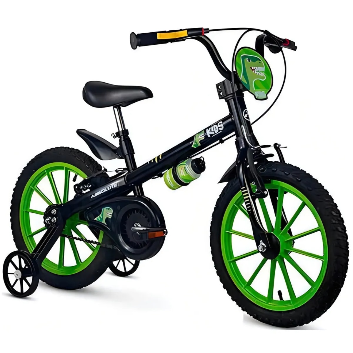 A Bicicleta Infantil Absolute Dino Aro 16 Preto e Verde é perfeita para os pequenos aventureiros que estão prontos para dar um próximo passo no mundo do ciclismo. Com visual inspirado na força e energia dos dinossauros, essa bike combina estilo marcante com segurança, sendo ideal para passeios divertidos e cheios de emoção. Equipada com freios V-Brake, limitador de giro e quadro em aço de carbono, garante estabilidade, controle e resistência para acompanhar as descobertas da criançada.