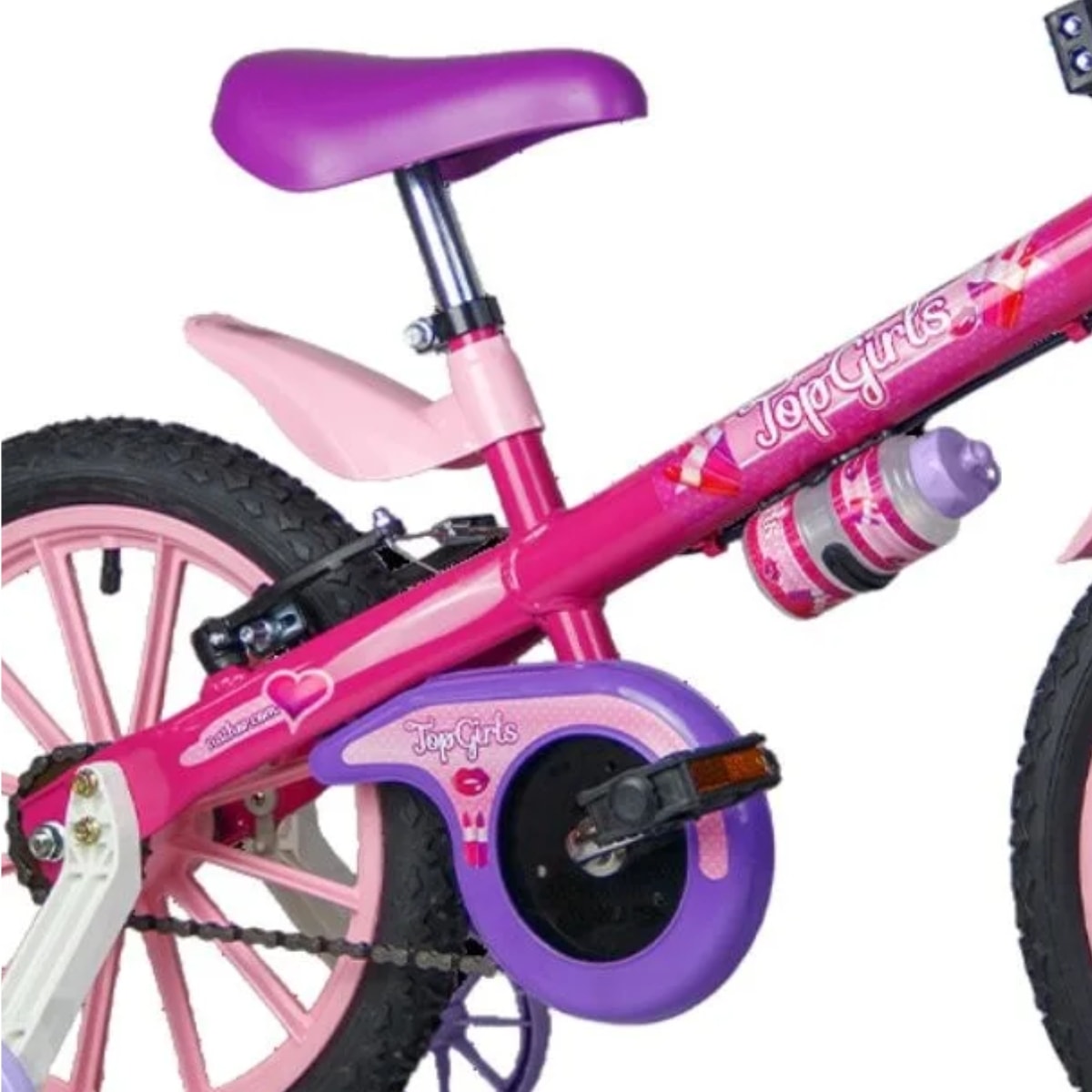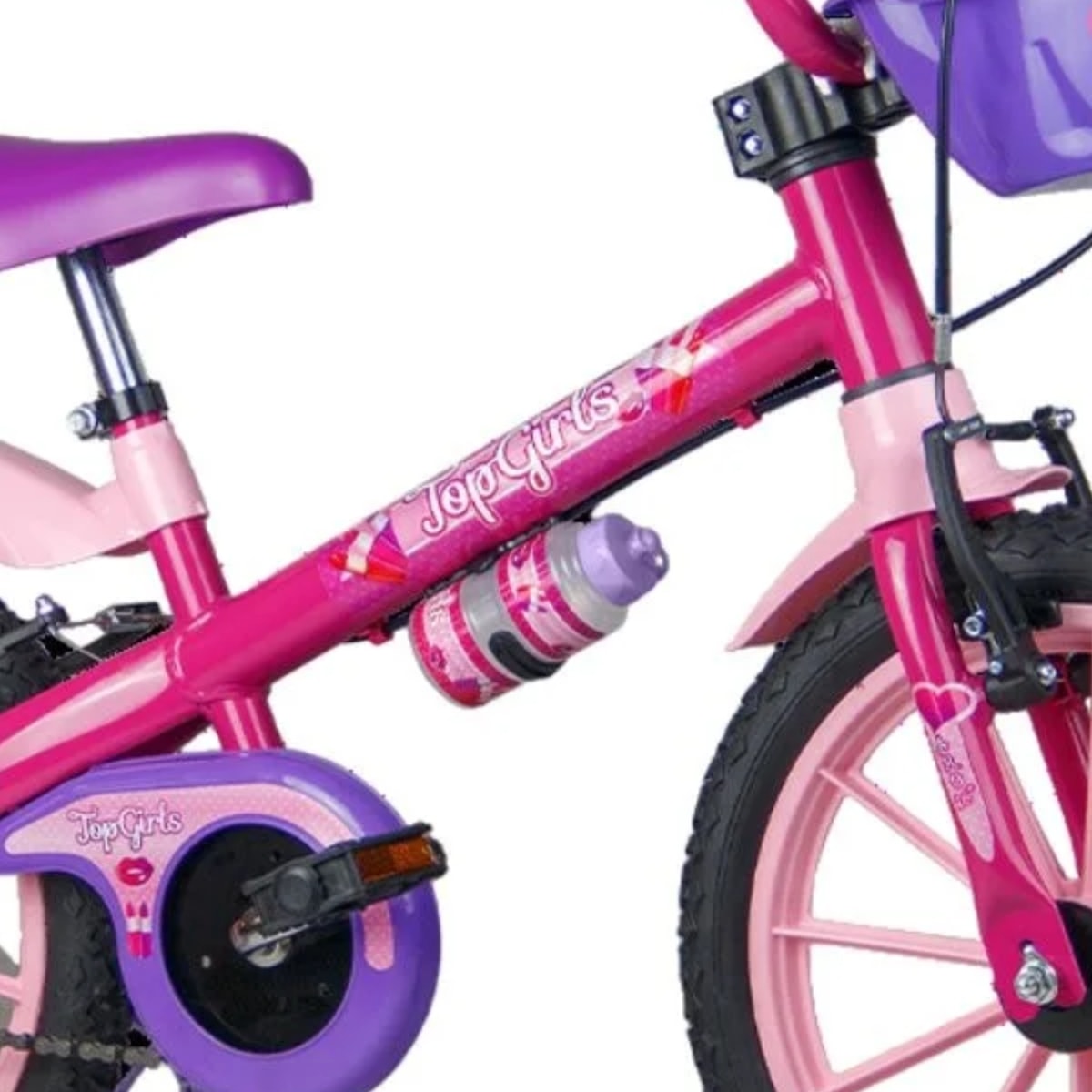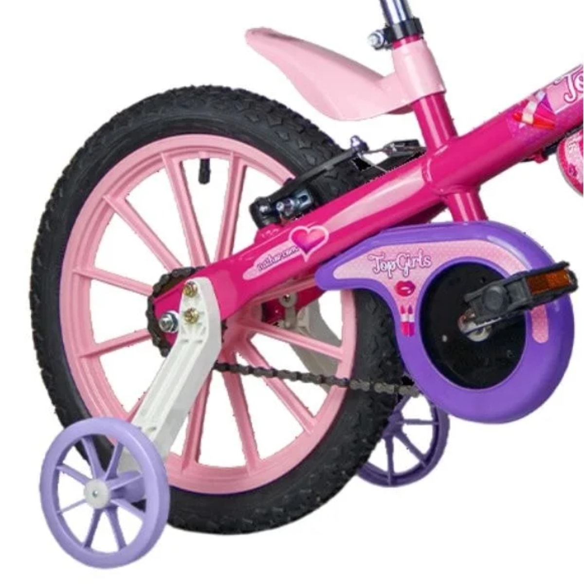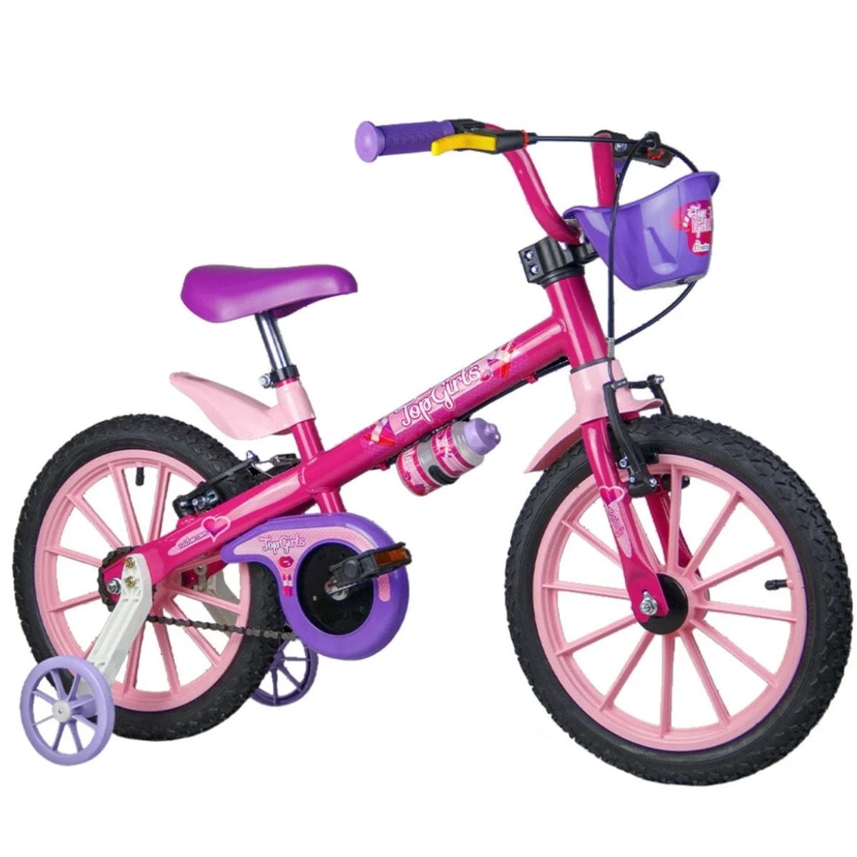 Porque é uma bicicleta que combina beleza, conforto e segurança. O limitador de giro do guidão evita acidentes, a maçaneta amarela torna o uso do freio traseiro mais intuitivo e o guidão regulável acompanha o crescimento da criança. Com rodinhas laterais ajustáveis, a Top Girls garante confiança nos primeiros pedais e autonomia no futuro, tornando cada passeio uma experiência especial.