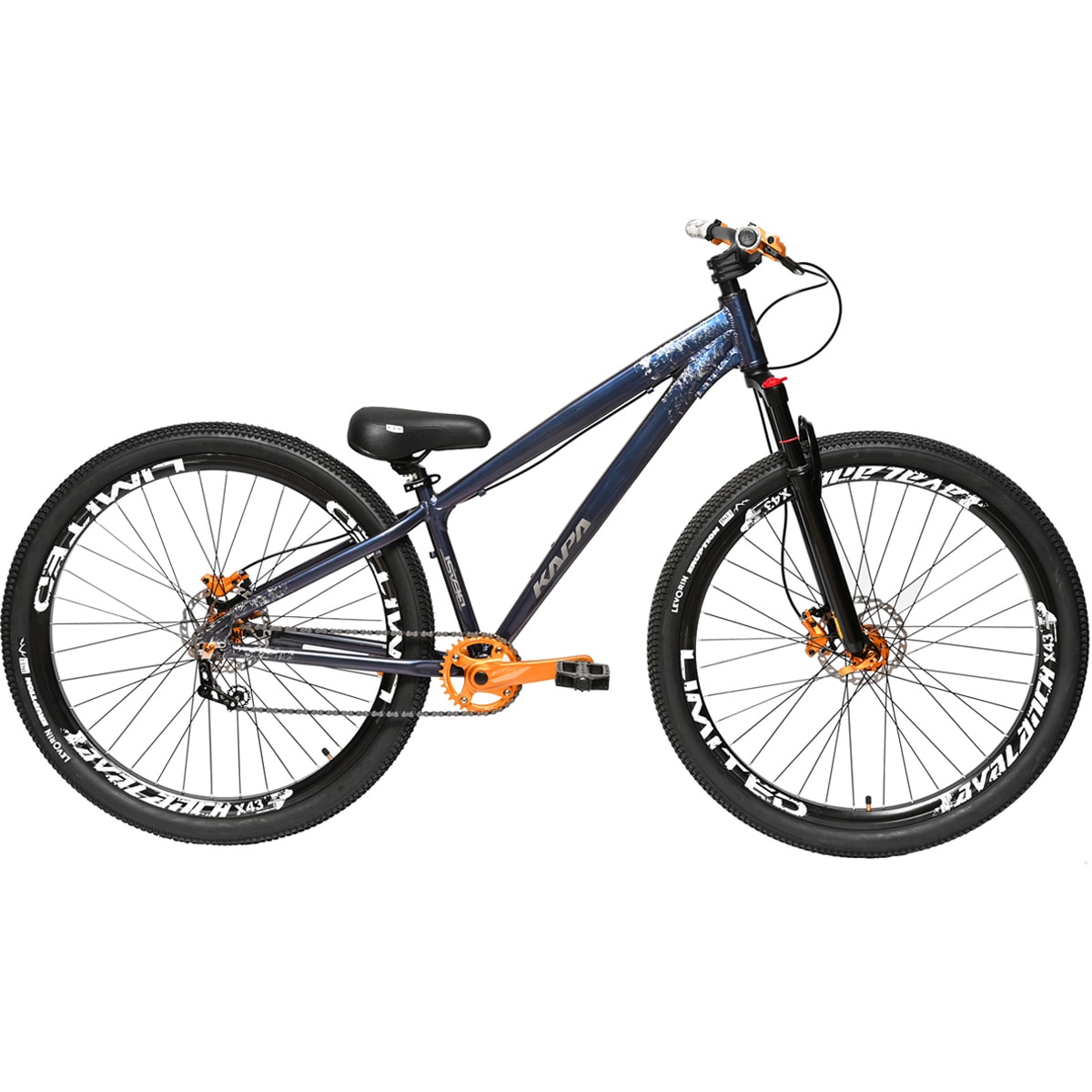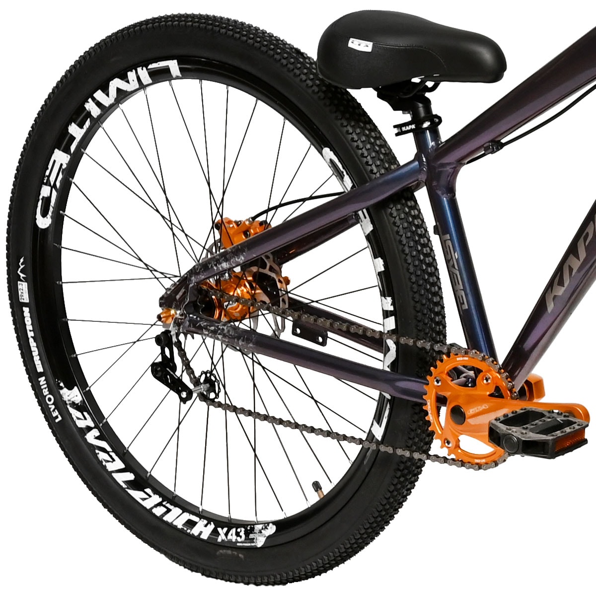 A Bike possui o quadro padrão horizontal super reforçado, montada com relação single, utilizando cog + espaçadores e pedivela single em alumínio. Na parte do freio, temos o par da linha Kook em combinação perfeita com a bike.