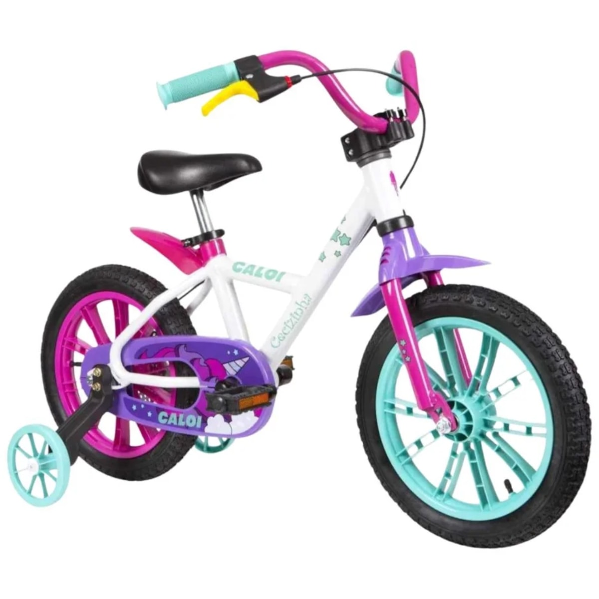 A Bicicleta Infantil Nathor Cecizinha Aro 14 Multicolor é a escolha ideal para quem busca uma bike de alta qualidade para as crianças que estão evoluindo no ciclismo. Muito além de uma bicicleta comum, ela traz características de modelos profissionais adaptadas para os pequenos. O quadro em alumínio garante leveza e resistência, enquanto o freio traseiro proporciona frenagens suaves e eficientes, aumentando a segurança. Com design multicolorido, moderno e vibrante, a Cecizinha se destaca não apenas pela aparência, mas também pela performance e conforto que oferece em cada pedalada.