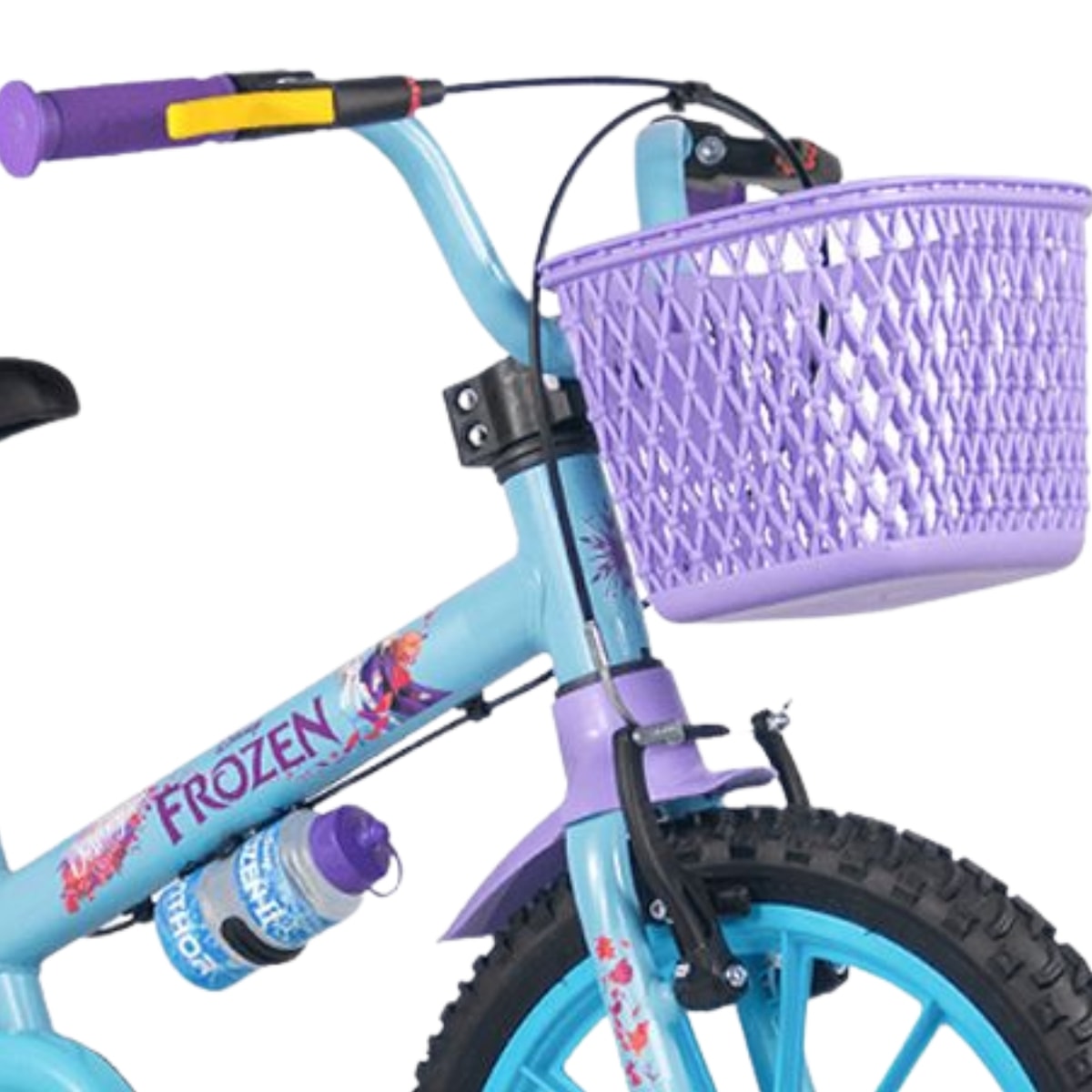 É a bicicleta que une segurança, conforto e um design encantador inspirado em Frozen. O limitador de giro do guidão evita acidentes, a maçaneta amarela facilita a identificação do freio traseiro e o guidão ajustável acompanha o crescimento da criança. As rodinhas laterais proporcionam mais confiança durante o aprendizado, enquanto a garrafinha torna os passeios ainda mais práticos. É a escolha perfeita para quem quer pedalar com magia e diversão.
