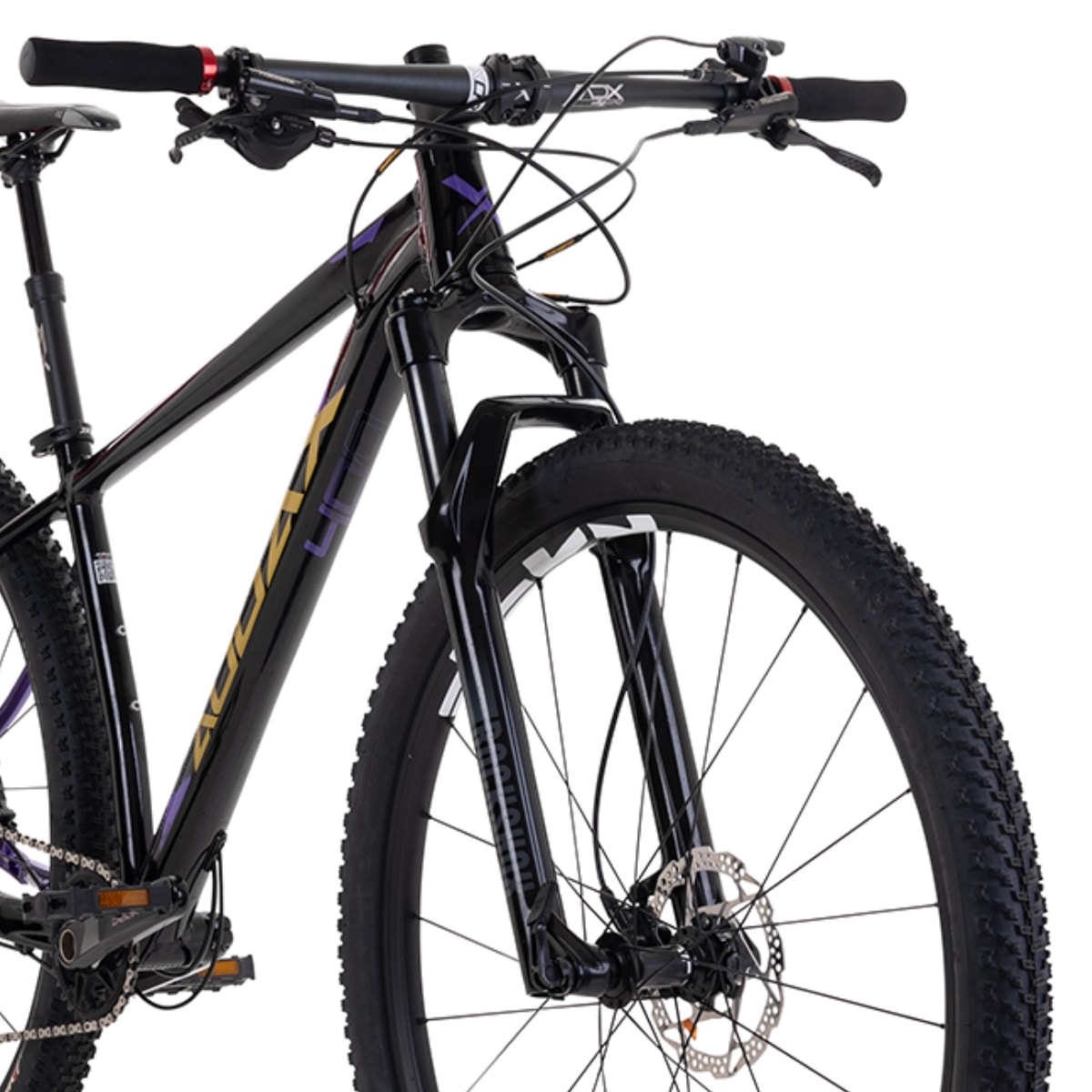 - Suspensão: RockShox Recon RL Air 100mm | 15x110mm | Tapered | Trava Remota no Guidão