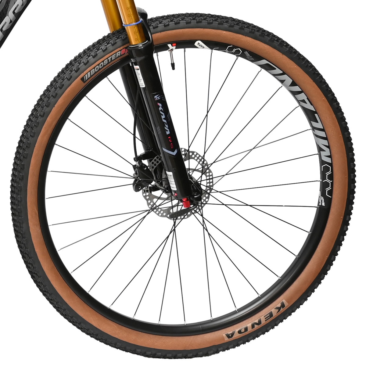 A Garra7 Jaguar traz rodas KAPA Milano (aro alumínio 29), cubos Shimano (center-lock) e pneus para MTB 29" — combinação pensada na durabilidade, rolamento e compatibilidade com a transmissão 12V.