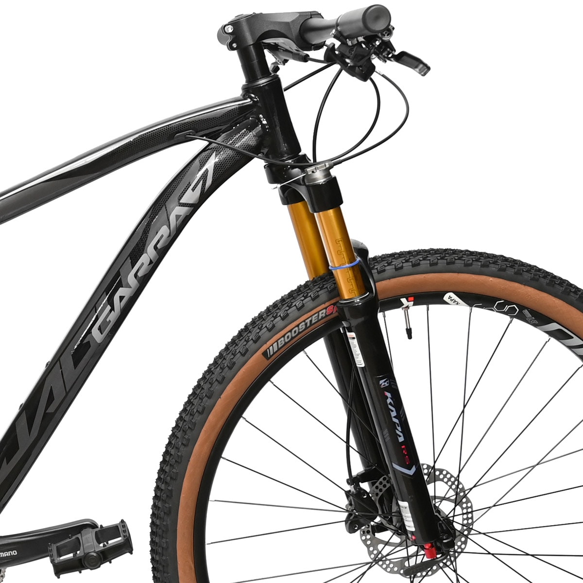 Para a combinação da transmissão da Bicicleta GARRA7 Jaguar, montamos com o excelente kit de 1x12 câmbio e trocador Shimano Deore, com escalonamento ideal de opções de marchas para enfrentar subidas com a super Cog de 51 dentes, descidas ou longas retas onde seja necessário giro constante de pedal e ganho de velocidade Essa bike está preparada para suportar os desafios do Mountain Bike e conferir ótimo desempenho de giro nas subidas mais difíceis, e a Suspensão dianteiraKAPA RS com funcionamento a Ar e trava remota no guidão, proporciona agilidade para o ciclista destravar ou travar no momento certo sem tirar as mãos da direção da Bike.