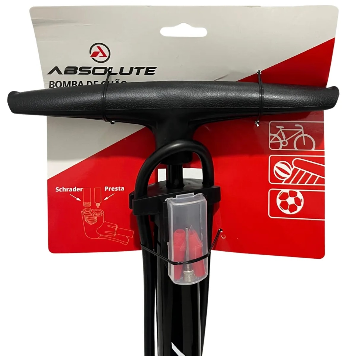 A Absolute 160 PSI é robusta, eficiente e extremamente versátil. O corpo em alumínio garante durabilidade, enquanto o bico duplo facilita o uso em qualquer bike. Acompanha adaptadores que ampliam as possibilidades de uso, tornando-a uma bomba completa para quem quer calibrar pneus e infláveis com precisão.