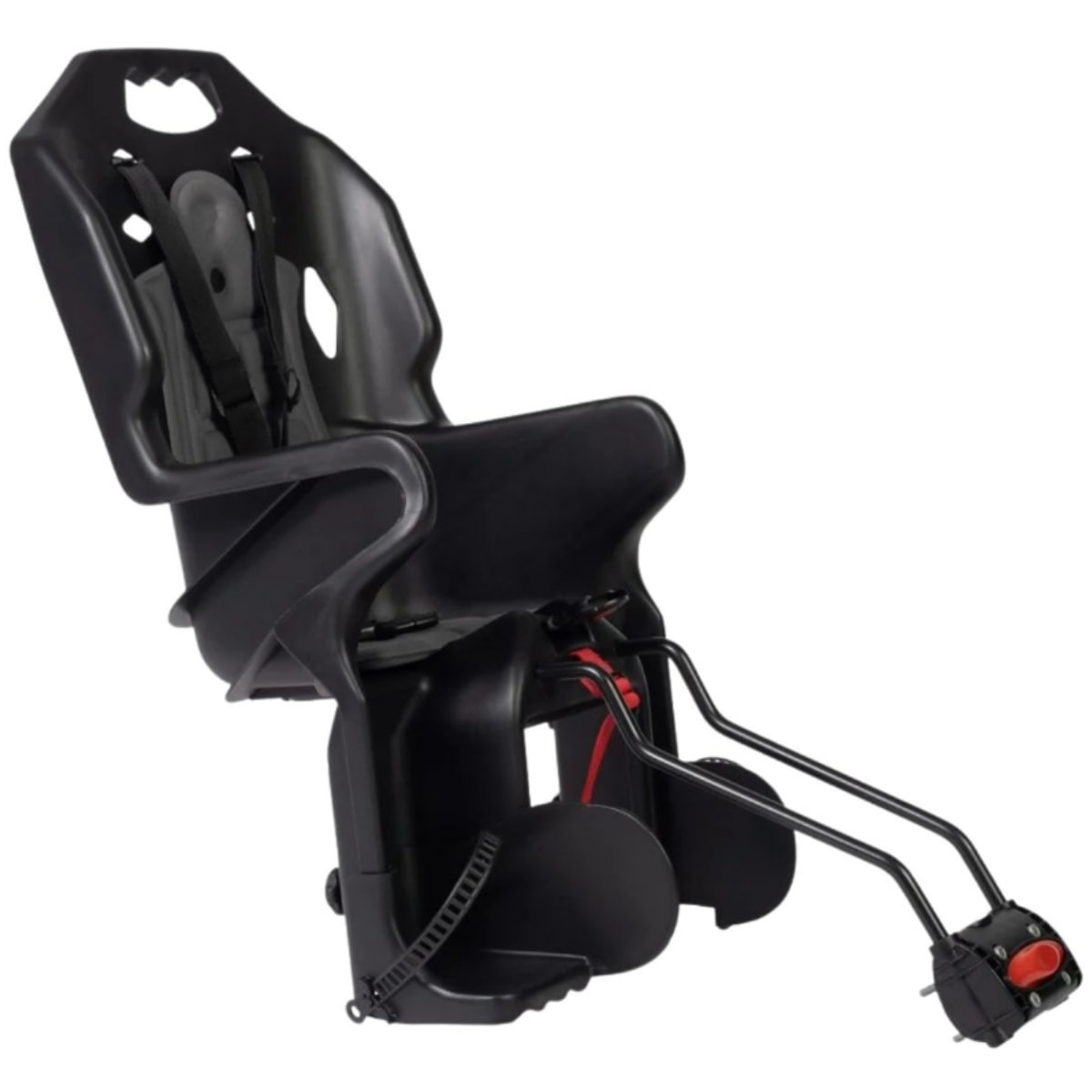 Cinto de três pontos com ajuste seguro e confortável, ideal para manter a criança protegida durante todo o passeio. Apoios de pés ajustáveis que acompanham o crescimento, oferecendo estabilidade adicional. Sistema de fixação rápida no quadro, garantindo firmeza, estabilidade e maior segurança mesmo em terrenos irregulares. Estrutura ergonômica e anatômica que acomoda a criança com suporte adequado para pedais mais longos ou frequentes.