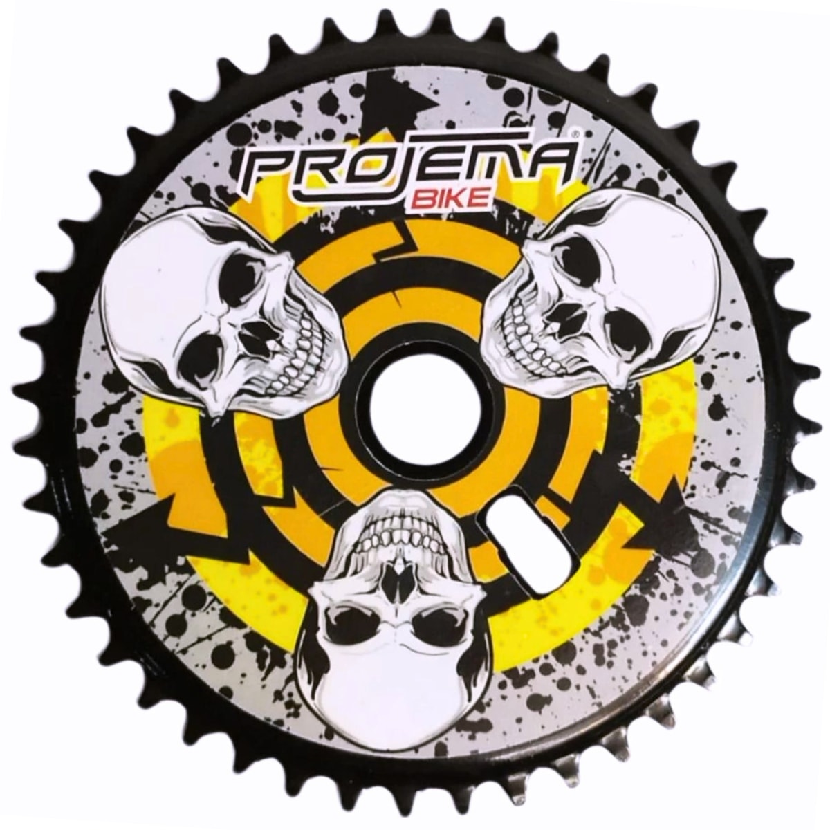 A Coroa Galic Caveiras 40D é fabricada em aço de alta resistência e se destaca pelo design exclusivo com estampa de caveiras, trazendo personalidade e estilo único para a bike. Além do visual marcante, garante durabilidade e ótimo desempenho em pedivelas monobloco.