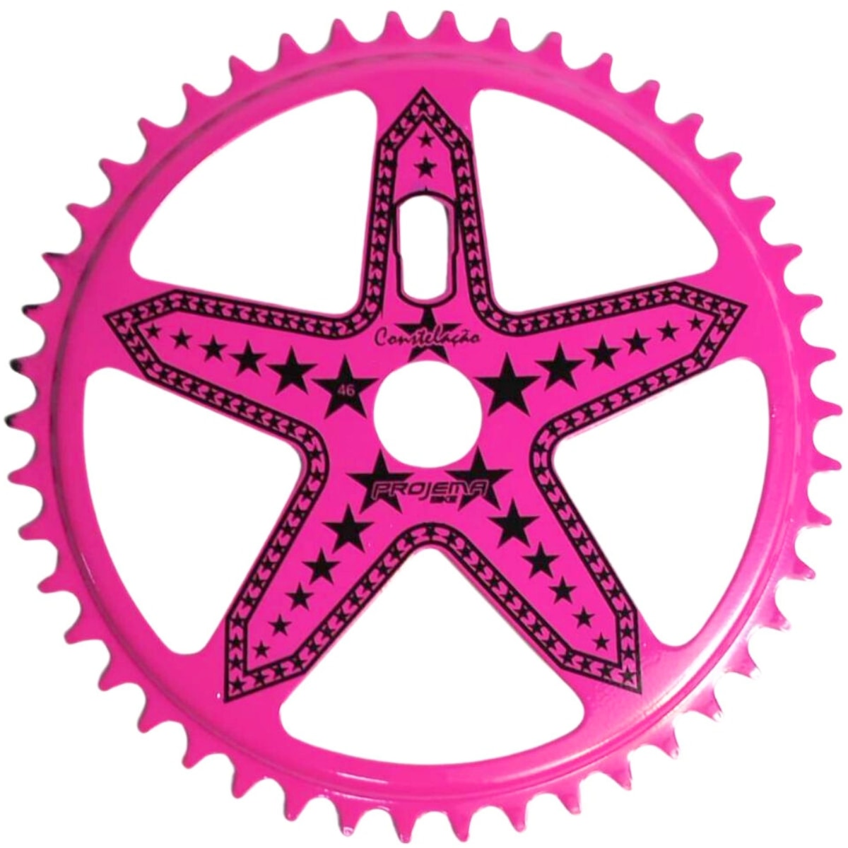 A Coroa Galic Constelação Pink 46D combina resistência e estilo em um só produto. Fabricada em aço de alta durabilidade, oferece excelente desempenho nos pedais, enquanto o design exclusivo com detalhes em rosa garante um visual marcante para sua bicicleta.