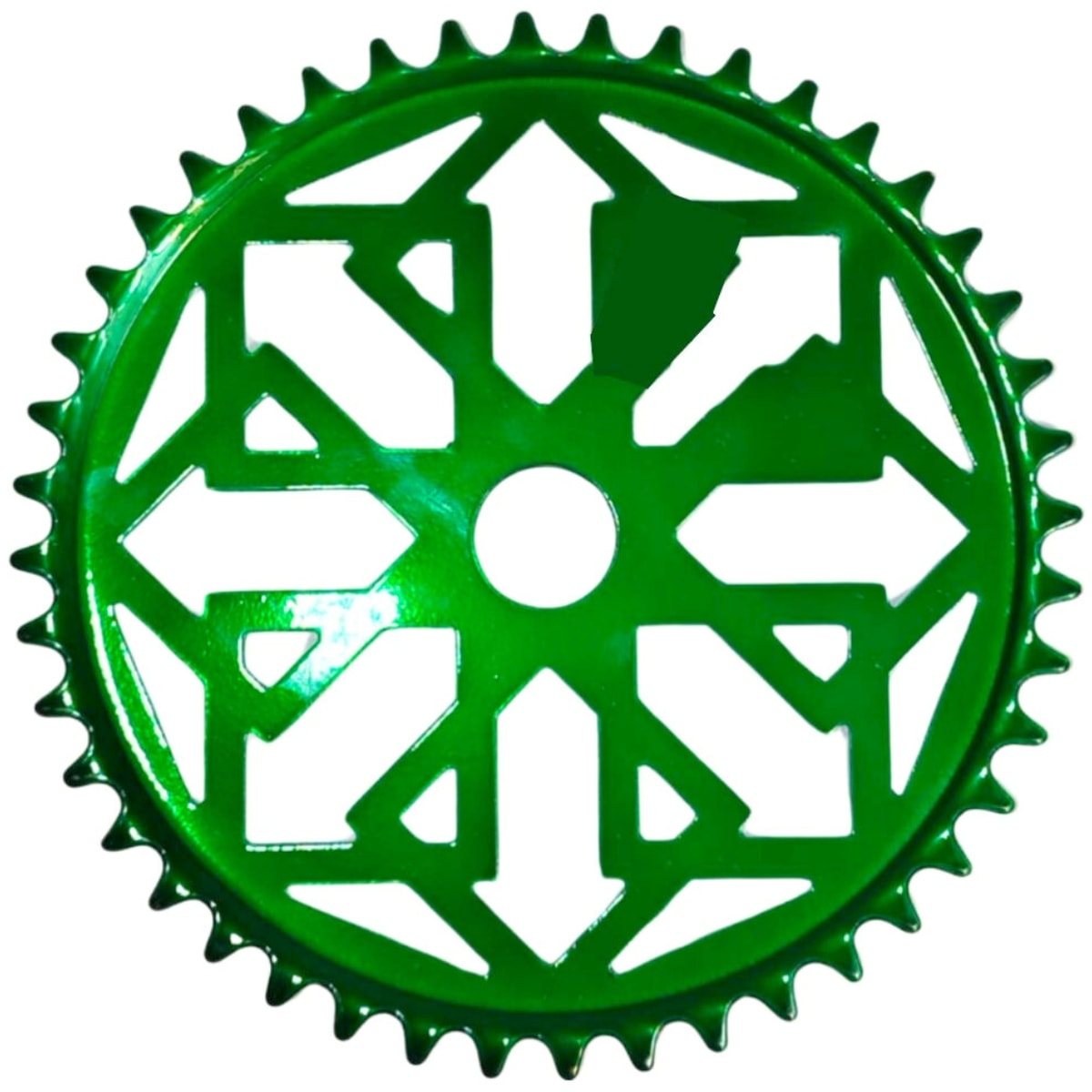 A Coroa Galic Silk Polly Verde 44D combina resistência e estilo em um só componente. Produzida em aço de qualidade, ela garante durabilidade no pedal e apresenta um design adesivado vibrante na cor verde, ideal para quem quer dar um toque diferenciado e moderno à bicicleta.