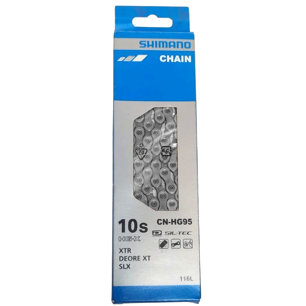 A Corrente Shimano CN-HG95 é a companheira ideal para quem busca mais leveza, durabilidade e precisão nas trocas de marcha. Com 116 elos, a corrente é compatível com sistemas de 10 velocidades como Shimano XTR, Deore XT e SLX, essa corrente entrega uma pedalada suave e silenciosa. A tecnologia SIL-TEC reduz o atrito e facilita a manutenção, enquanto o design direcional HG-X garante mudanças mais rápidas e eficientes — resultados que você sente a cada giro nos pedais.