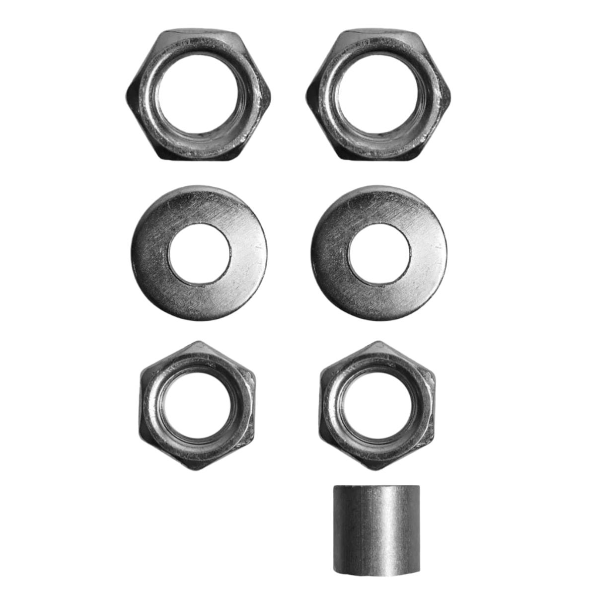 - Componentes Inclusos: 2 Contraporcas, 2 Arruelas, 2 Porcas, 1 Espaçador
