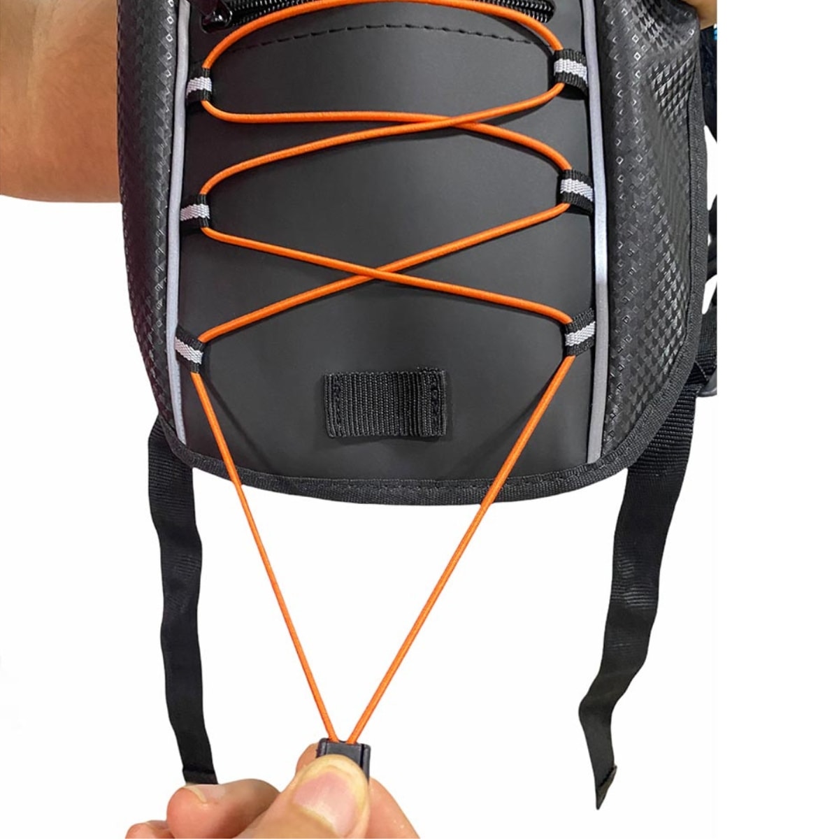 - Cordão externo: Para levar itens extras (lanche, corta-vento, etc.)