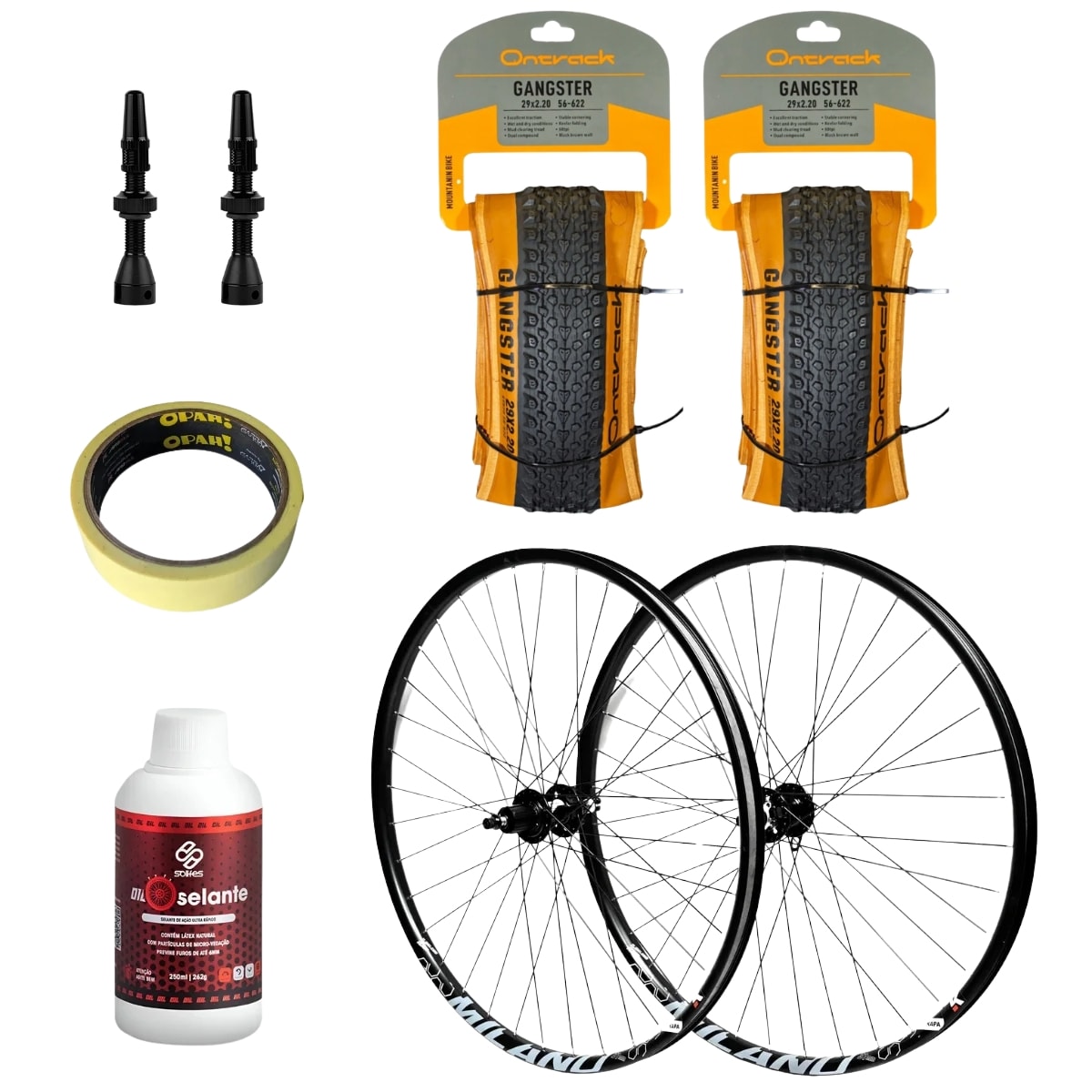 Par Rodas Kapa Milano + Par Pneus Ontrack Gangster + Kit Tubeless