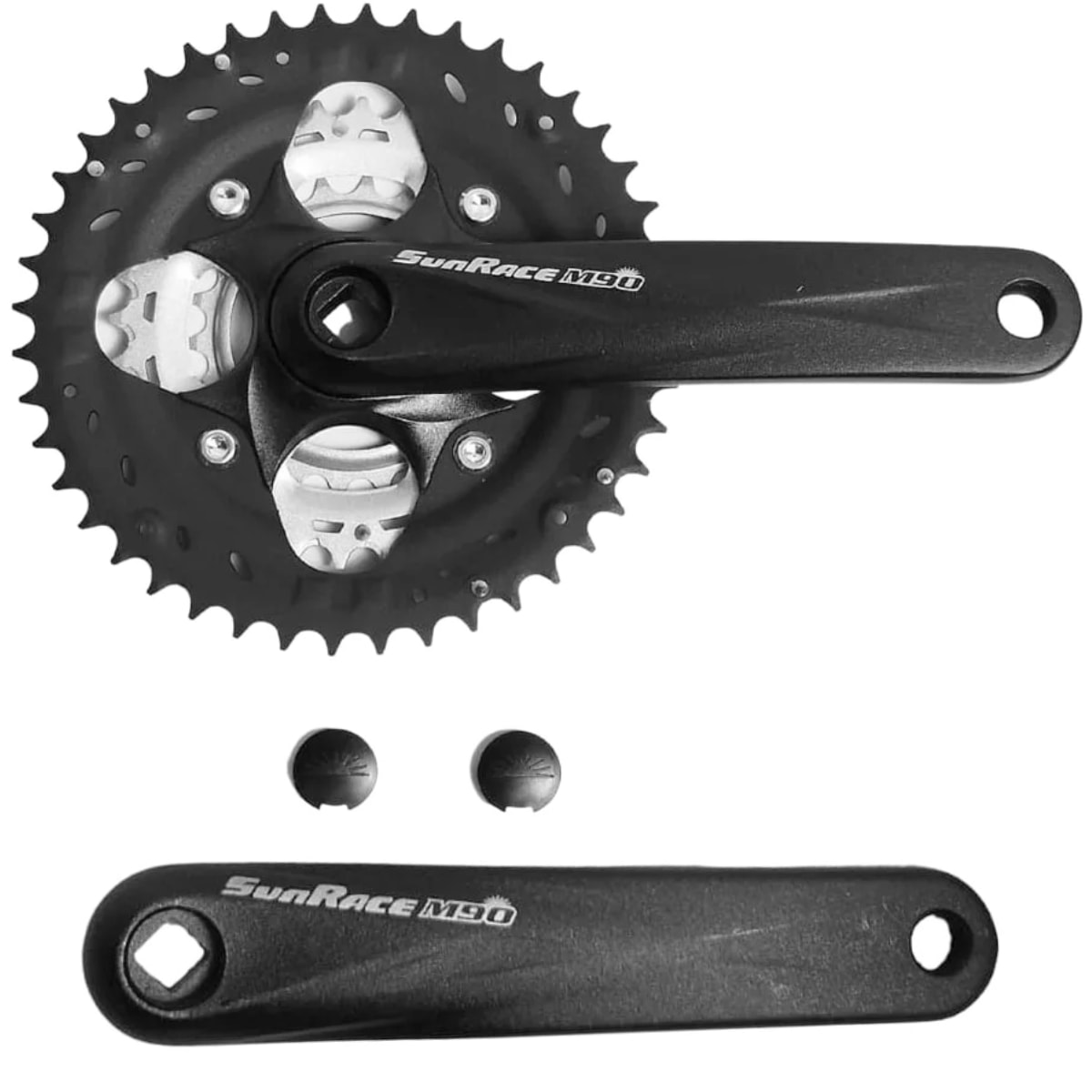 Pedivela Alumínio Triplo Sunrace M904 22/32/44D Preto 175mm Ponta Quadrada