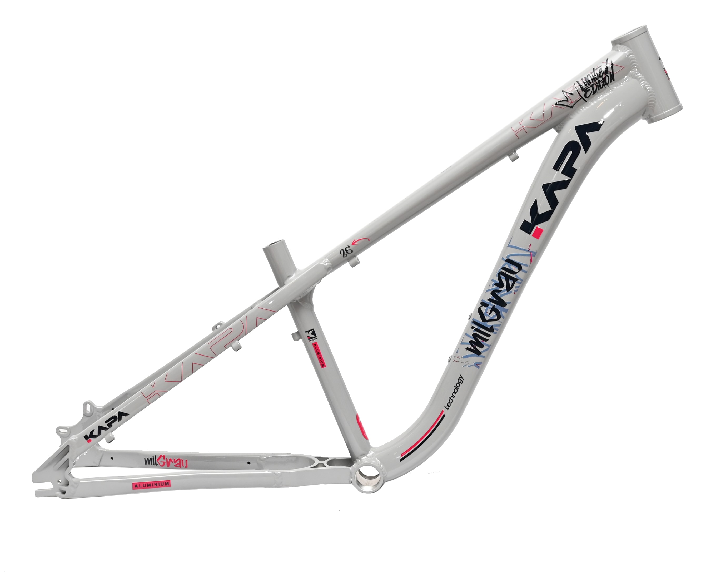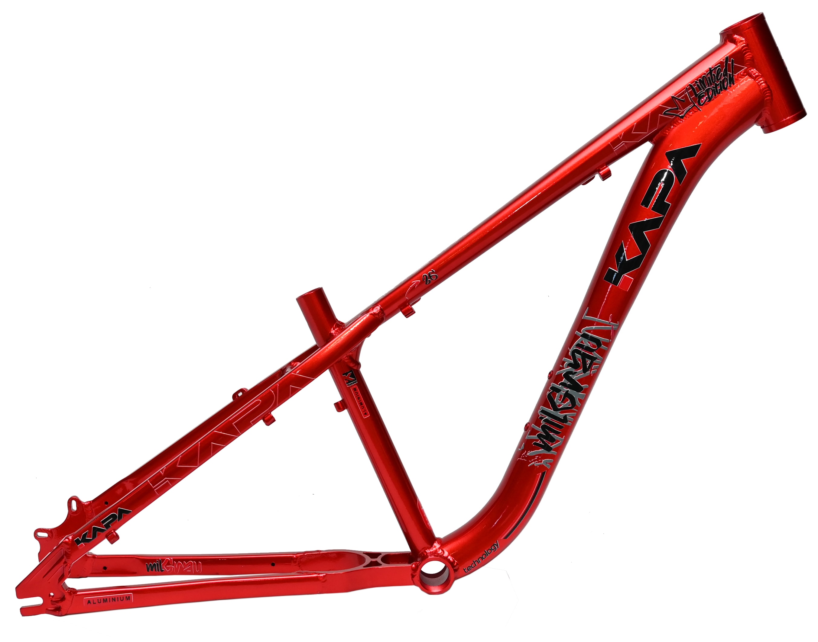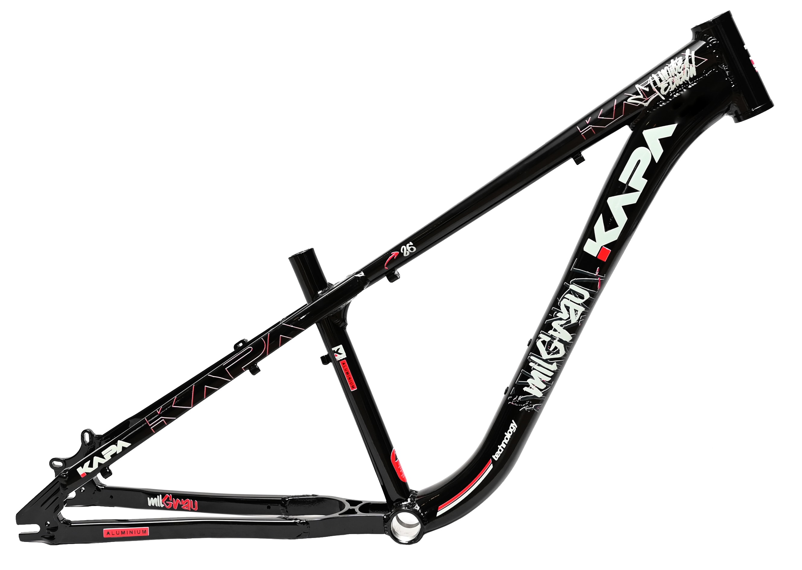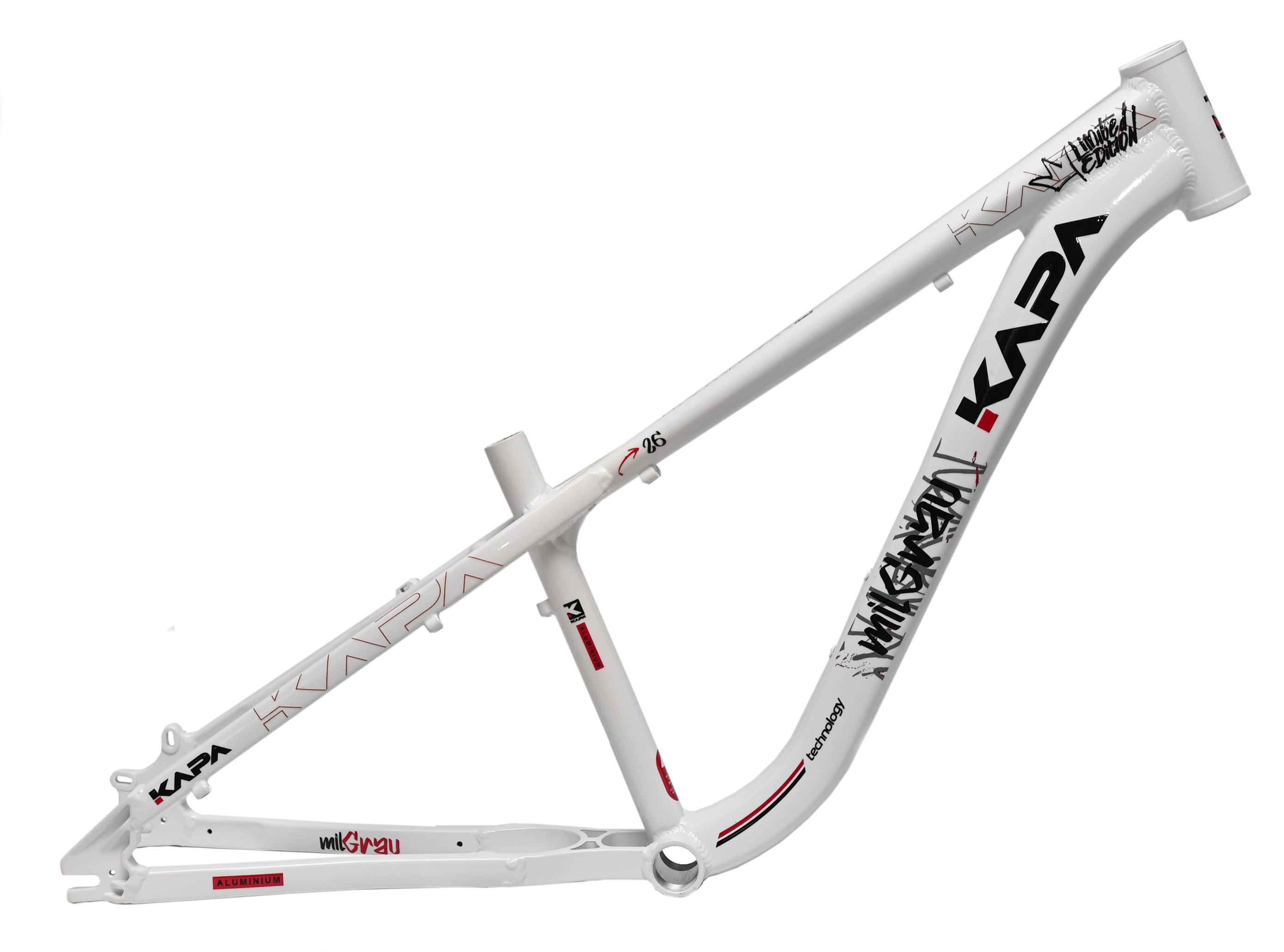 O Quadro Aro 26 Kapa Mil Grau Freeride é o lançamento exclusivo da Loja na Pista, desenvolvido especialmente para quem vive a verdadeira Arte do Grau. Com um design robusto, agressivo e marcante, este quadro rivaliza diretamente com modelos como Hupi Naja e Gios, mas com identidade própria que chama atenção em qualquer rolê. Construído em alumínio leve e resistente, entrega durabilidade e firmeza para manobras radicais sem abrir mão do estilo único que só a Kapa proporciona.