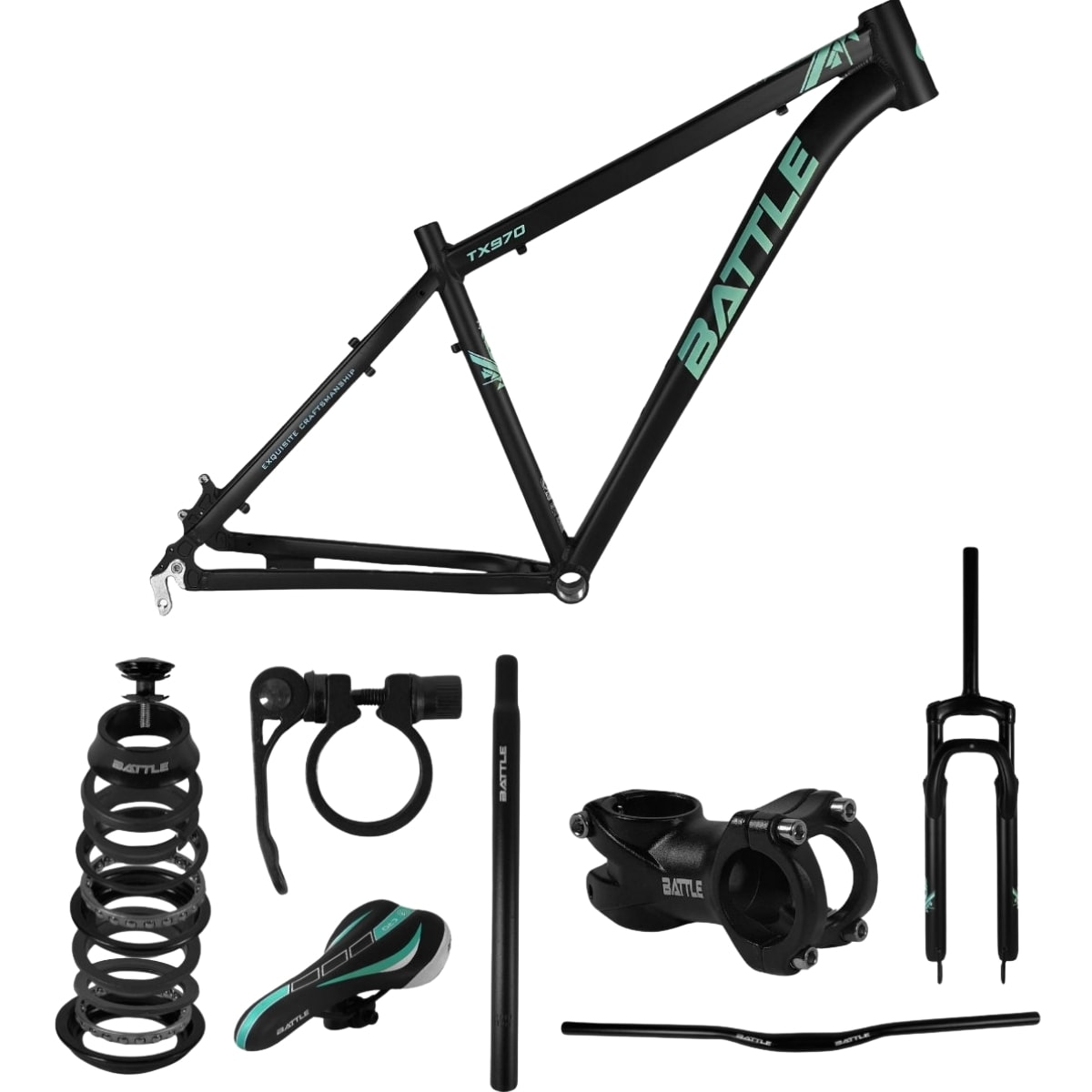 O Quadro Battle TX970 Aro 29 oferece resistência, durabilidade e alto desempenho. Com cabeamento totalmente externo, facilita a manutenção e ajustes rápidos. Acompanhado de componentes de alta qualidade, como guidão, canote, garfo e mesa, o conjunto oferece uma performance superior para ciclistas que buscam qualidade e resistência para as trilhas ou passeios urbanos. O design moderno e a combinação de cores preta e azul fazem deste quadro uma escolha estilosa e eficiente para sua bicicleta.