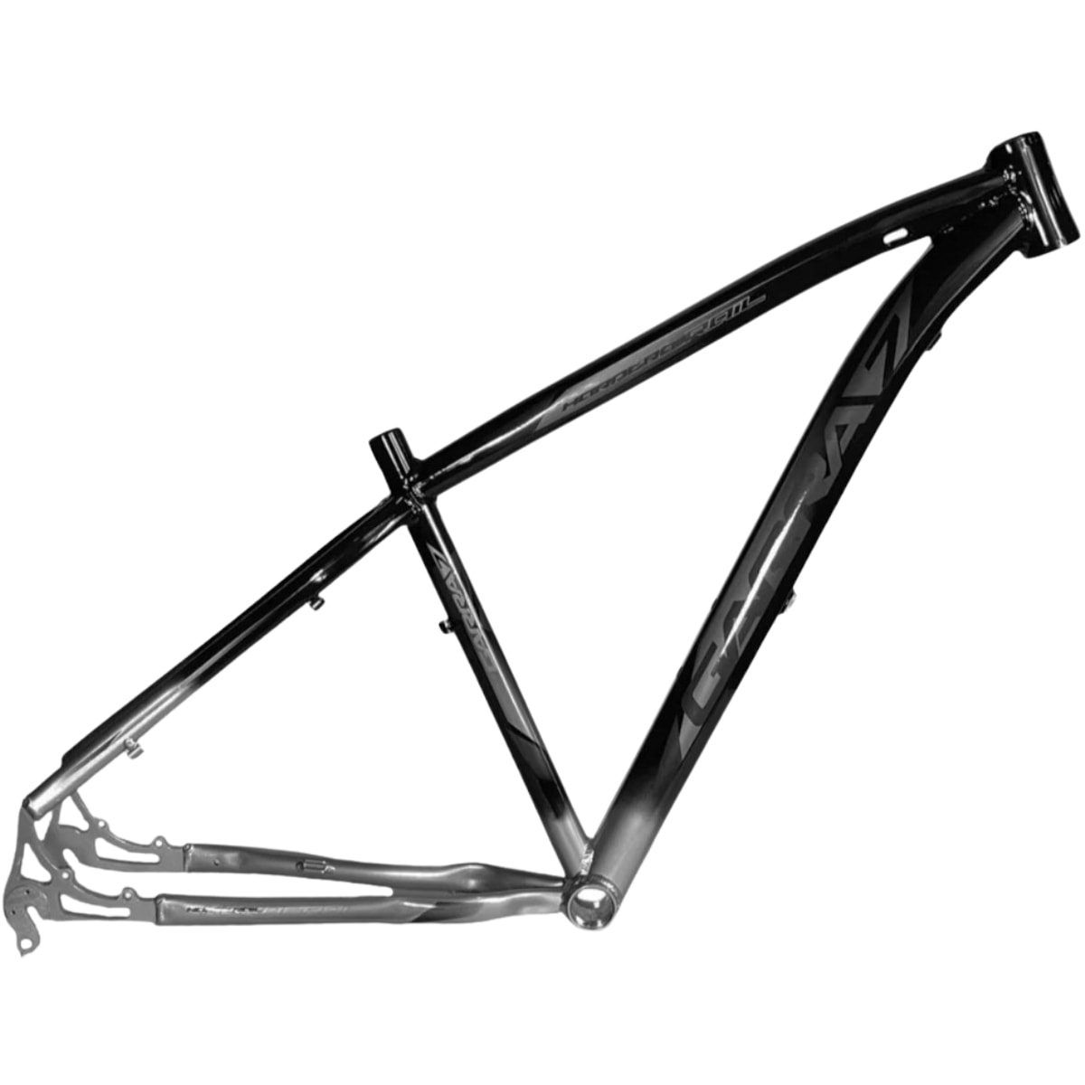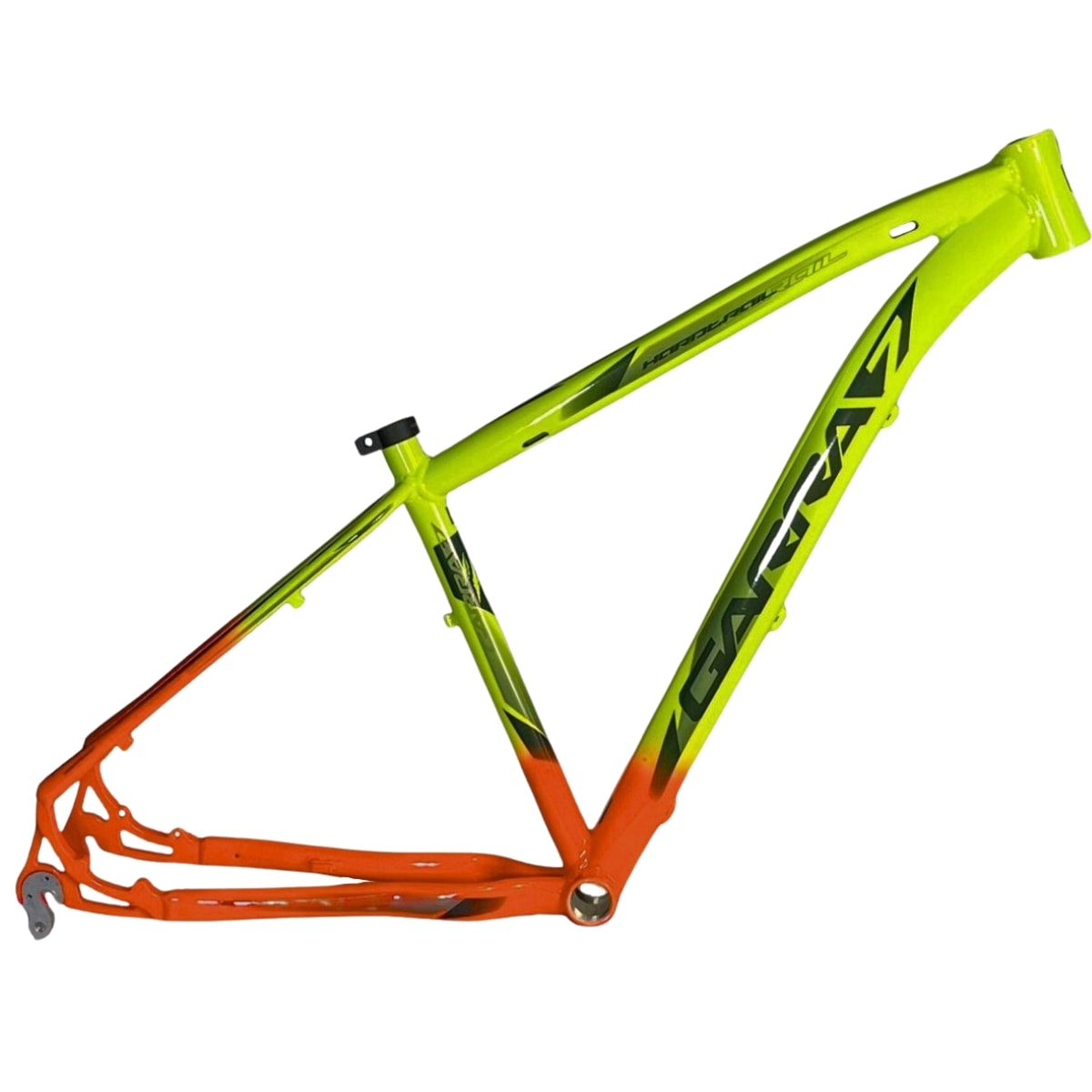 O Quadro Garra7 Hardtrail foi desenvolvido para ciclistas que desejam iniciar ou aprimorar suas experiências no MTB com um produto resistente, leve e moderno. Produzido em alumínio 6061, possui apenas 1870g, proporcionando maior desempenho em trilhas e terrenos irregulares. Seu design impressiona com grafismos atualizados e pintura Bi Color com acabamento em verniz brilho. Além disso, o cabeamento parcialmente interno protege os cabos e garante uma pedalada mais limpa e eficiente.