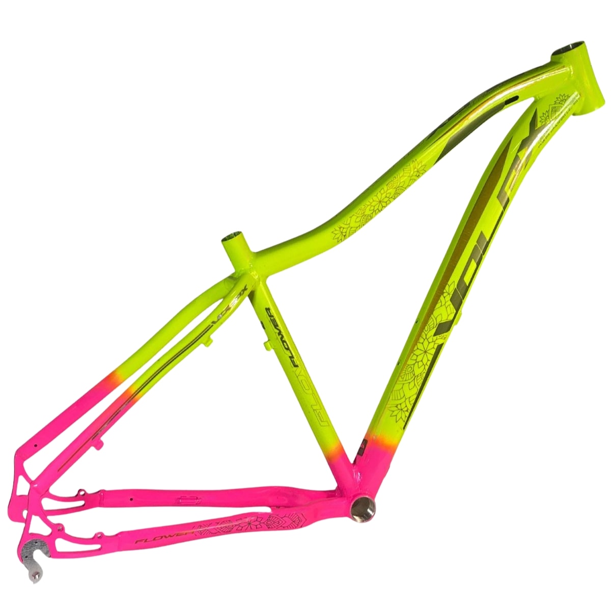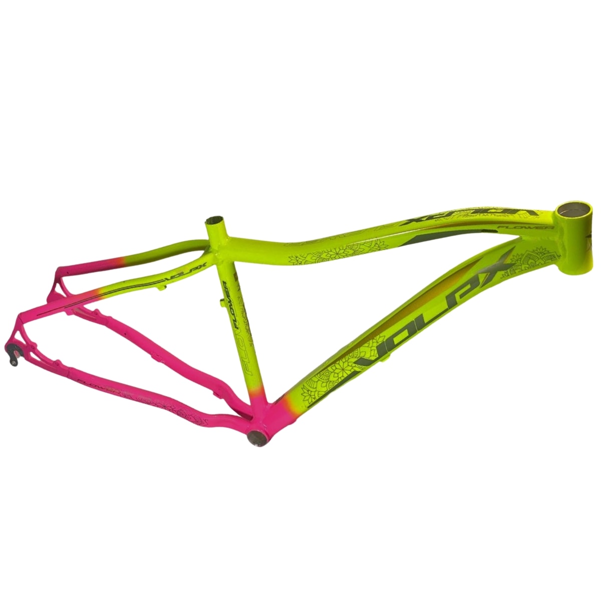 Quadro de Bicicleta Aro 29 MTB Volpx Flower Amarelo Neon e Rosa