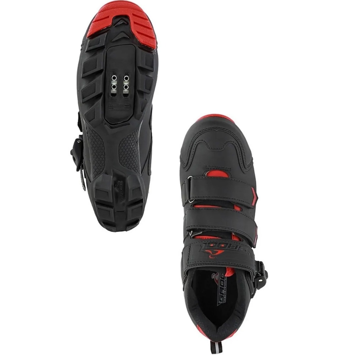 • Solado: Estrutura rígida com placa metálica galvanizada compatível com tacos padrão MTB (2 parafusos)