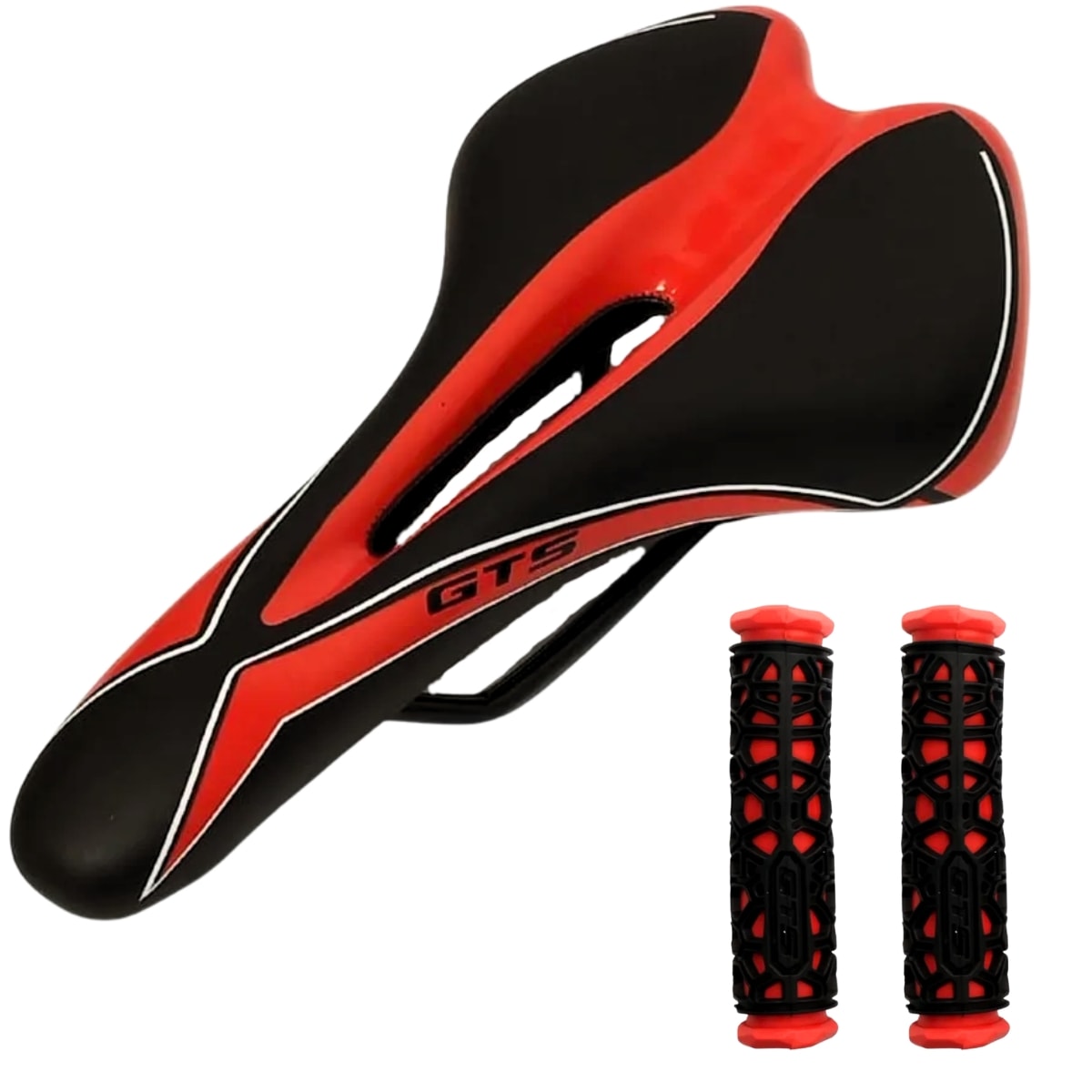Selim MTB GTS HY 236 Preto e Vermelho Vazado com Manopla