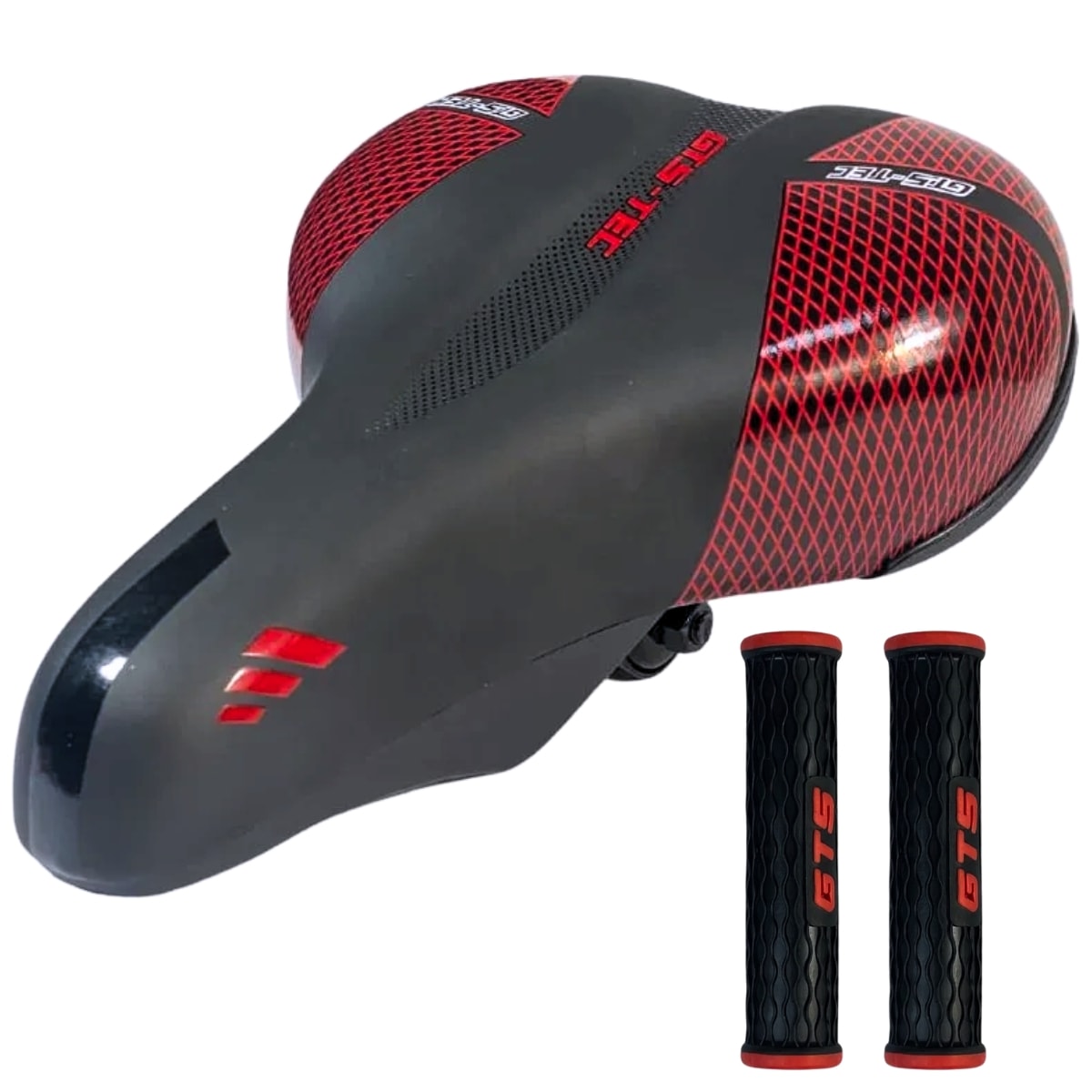 O Selim GTS TEC Middle foi desenvolvido para quem busca o equilíbrio perfeito entre conforto, estilo e desempenho. Seu design anatômico com acabamento preto e vermelho confere um visual moderno, enquanto a espuma de alta densidade e o sistema de amortecimento integrado reduzem o impacto nas pedaladas mais longas. O conjunto ainda acompanha manoplas, garantindo uma pegada firme e ergonômica no guidão — ideal para bicicletas MTB, urbanas e de passeio.